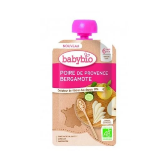 БЕЙБИ БИО ПЛОДОВ МУС КРУШИ С БЕРГАМОТ 120ГР 6+ е плодов мус круши с бергамот, който е предназначен за деца над 6 месечна възраст. Той е специално създаден в практична пауч опаковка, която лесно и удобно по-големите деца могат да държат в ръцете си и да се насладят на плодовите си пюрета като големи хора. Готова за употреба, този тип опаковка позволява лесно да се консумира по време на път, разходка в парка или на плажа.