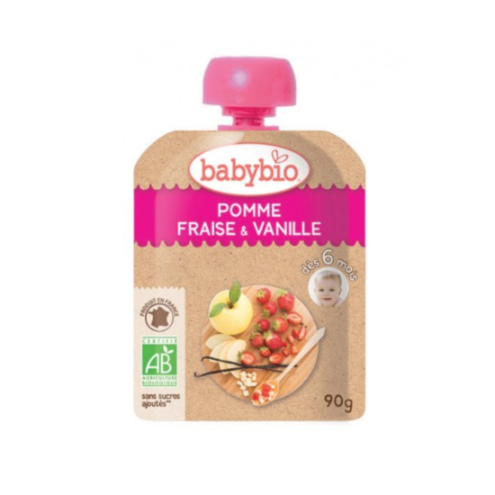 Какво е Вашето мнение за:БЕЙБИ БИО ПЛОДОВ МУС С ЯБЪЛКА, ЯГОДА И ВАНИЛИЯ 90ГР. 6М+