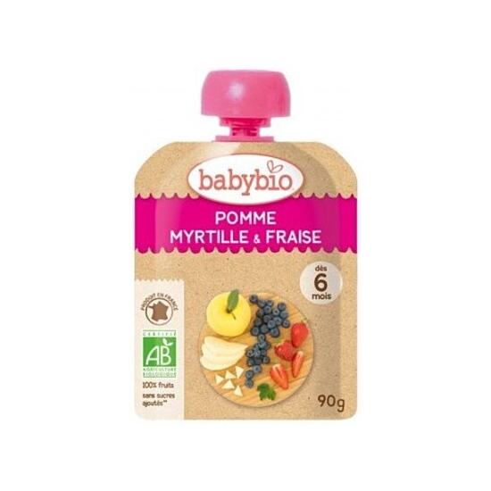БЕЙБИ БИО ПЛОДОВ МУС С ЯБЪЛКА, ЯГОДИ И БОРОВИНКИ 90ГР. 6М+