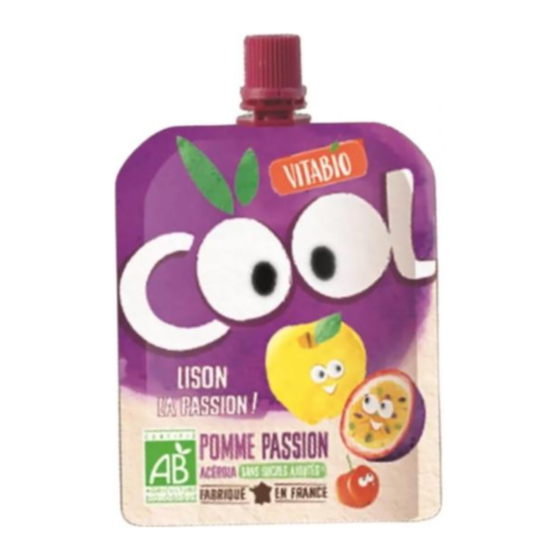ВИТАБИО ПЛОДОВ МУС ЗА ДЕЦА С АЦЕРОЛА, ЯБЪЛКИ И МАРАКУЯ 90ГР. е био плодов мус от ябълка, маракуя, банан и ацерола, подходящ за деца над 12-месечна възраст. Идеален за десерт или хапване между храненията. В удобна опаковка, подходяща за път и разходка. Без добавена захар.