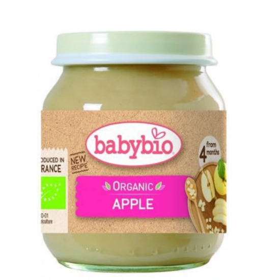 БЕЙБИ БИО ПЛОДОВО ПЮРЕ ЯБЪЛКА 130ГР 4+ е био плодово пюре от ябълка подходящо за бебета над 4-месечна възраст. Идеално за десерт или лека закуска между храненията. Може да се комбинира с мляко или каша. Пюретата на Babybio са направени с изцяло био продукти, без стабилизатори, оцветители и консерванти.