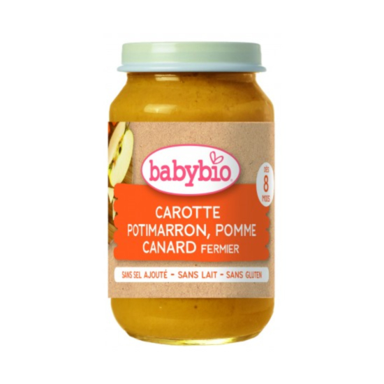 Състав: 65% зеленчуци (34% моркови, 17.5% тиква, лук, пащърнак), 17% плодове (ябълки), растителни масла.