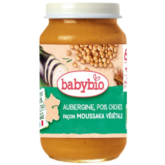 Чудесното ястие - Вегетарианска мусака с патладжан, нахут и домати от Babybio ще допринесе за обогатяването на вкусовете и изграждането на полезни хранителни навици. Пюрето осигурява оптимални количества ценни хранителни вещества, необходими за правилния растеж на децата. Съдържа изцяло био продукти, без глутен, без сгъстители и е идеален избор да предложите и запознаете вашето дете с нови вкусове и текстури.