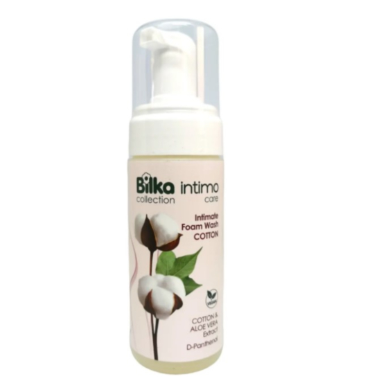 БИЛКА ИНТИМНА ПЯНА ПАМУК 140МЛ е нежна интимна пяна за външно измиване и поддържане на ежедневна хигиена на интимната зона. Съдържа натурални екстракти от алое вера и памук, които деликатно измиват, без да изсушават лигавицата. Комбинацията с млечна киселина, D-пантенол и глицерин - поддържа естественото ниво на pH, успокоява дълготрайно и овлажнява. Нежен, освежаващ аромат.