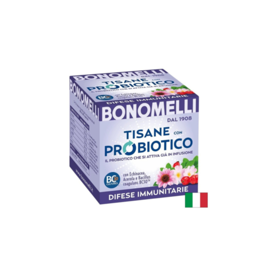 Чай от ароматни билки в комбинация с пробиотик. Натурален висококачествен продукт от италианския производител Bonomelli.