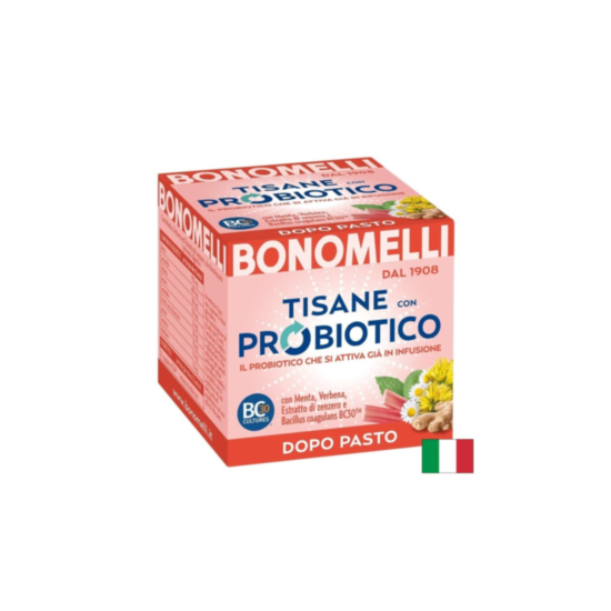 Освежаващ билков чай с пробиотик. Уникална комбинация от специално подбрани висококачествени лечебни растения. Здравословен продукт на италианския бранд Bonomelli.