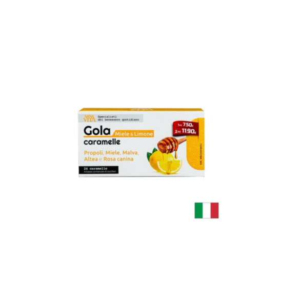Билкови бонбони за гърло с прополис, пчелен мед, горски слез, бяла ружа и шипка, 24 броя с вкус на мед и лимон 8052049550635