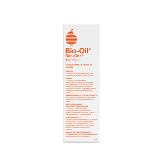 Bio-Oil не съдържа слънцезащитен фактор. Нанасяйте слънцезащитен продукт само след като Bio-Oil е напълно абсорбиран от кожата.