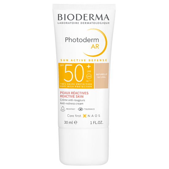 е слънцезащитен крем, който предпазва кожата на лицето и кръвоносните съдове при различни нива на интензивност на слънчевите лъчи. Биодерма Фотодерм АР Слънцезащитен оцветен крем за лице при зачервявания SPF50+ Натурален нюанс предлага оптимална защита срещу UV лъчите (слънчево изгаряне, слънчеви алергии и др.) благодарение на SUN ACTIVE DEFENSE : високотехнологична защита, подсилена срещу UVA лъчи. Комбинация от UV филтри и патентована биологична защита, която подобрява собствените защитни сили на кожата, за да подпомогне дълготрайната грижа за нейното здраве при излагане на слънце. Иновация от BIODERMA, патентът ROSACTIV™ е комбинация от активни съставки със силно действие срещу зачервяването, които се борят срещу образуването и влошаването на зачервяванията. Осигурява 8-часова хидратация. Кремът е с изключително лека консистенция, която не оставя бели следи, не лепне и не омазнява. Без парабени и аромат. Устойчив на вода, топлина и висока влажност. Без парабени и аромат. С много добра очна и кожна толерантност. Дерматологично и офталмологично тестван продукт. Фотостабилен. Некомедогенен.