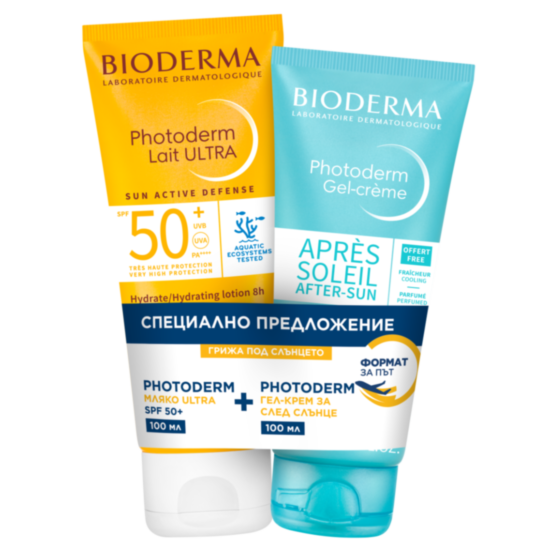 БИОДЕРМА КОМПЛЕКТ ФОТОДЕРМ МЛЯКО УЛТРА SPF50+ 100МЛ+ФОТОДЕРМ АПРЕ-СОЛЕЙ ГЕЛ-КРЕМ 100МЛ