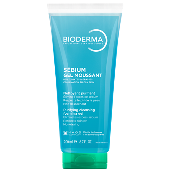 Sébium Gel moussant (измиващ гел) е пречистващ мицеларен почистващ продукт за комбинирана до мазна кожа. Мицеларна технология, вдъхновена от нашия уникален екобиологичен подход NAOS ECOBIOLOGY, елиминира замърсяванията, като същевременно запазва баланса на кожата. Формулата, създадена от дуо пречистващи активни съставки (мед + цинк), помага за премахване на излишния себум, без да изсушава кожата. Без сапун. Тестван под дерматологичен и офталмологичен контрол.