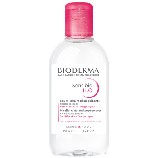 БИОДЕРМА СЕНСИБИО МИЦЕЛАРНА ВОДА 250МЛ e мицеларна вода предназначена за чувствителна и нетолерантна кожа. Подходящ за възрастни и тийнейджъри. Sensibio H2O е първата и единствена почистваща мицеларна вода, напълно биологично съвместима с кожата. Естерите на мастните киселини, съставни елементи на мицелите, са подобни на фосфолипидите на мембраните на кожните клетки и помагат по естествен начин да се възстанови хидролипидният слой на кожата. Биодерма Сенсибио Мицеларна вода за чувствителна кожа има действие 4 в 1: почиства, успокоява, освежава и тонизира кожата. Почиства дори водоустойчив грим. Без парабени и аромат. Дерматологично и офталмологично тестван продукт.