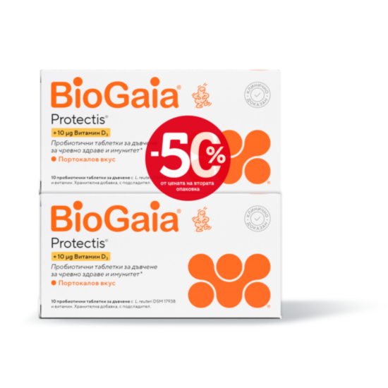БИОГАЙА КОМПЛЕКТ 2 ОПАКОВКИ ТАБЛЕТКИ С ВИТАМИН D3 ПОРТОКАЛ X 10 - ВТОРА ОПАКОВКА С 50%