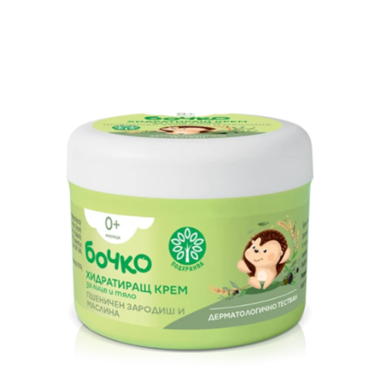 БОЧКО ХИДРАТИРАЩ КРЕМ 240МЛ е крем, който осигурява необходимата хидратация, подхранване и защита на деликатната бебешка кожа още от първия ден. Комбинацията от масла и витамини прави крема изключително грижовен към кожата. Кадифено нежната емулсия е с подбран хипоалергенен аромат, нанася се лесно и попива бързо, без да оставя следи. Идеален за употреба след измиване и баня.