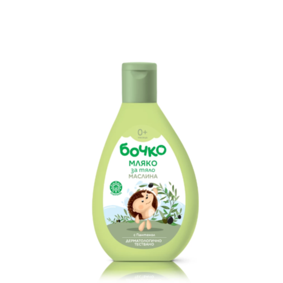 БОЧКО МЛЯКО ЗА ТЯЛО МАСЛИНА 200 МЛ е бебешко мляко за тяло, което се грижи за необходимото подхранване на деликатната кожа на бебето още от първия ден. Вложеното в него натурално масло от маслина подхранва кожата и я прави по бебешки мека. Добавеният пантенол задържа естествената влага в кожата и спомага за нейното постоянно обновяване. Идеално за употреба след измиване или баня.