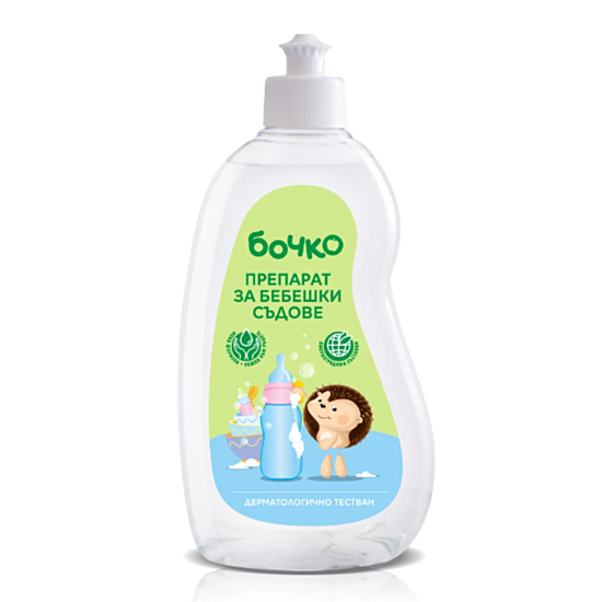 БОЧКО ПРЕПАРАТ ЗА СЪДОВЕ 500МЛ ефективно отстранява остатъците от мляко и храна от бебешките съдове и принадлежности (биберони, залъгалки, шишета, миещи се играчки). Съдържа биоразградими съставки, които са напълно разтворими във вода. Грижовен към ръцете по време на миене. Благодарение на вложения в препарата глицерин, задържа влагата в кожата и я оставя мека и гладка.
