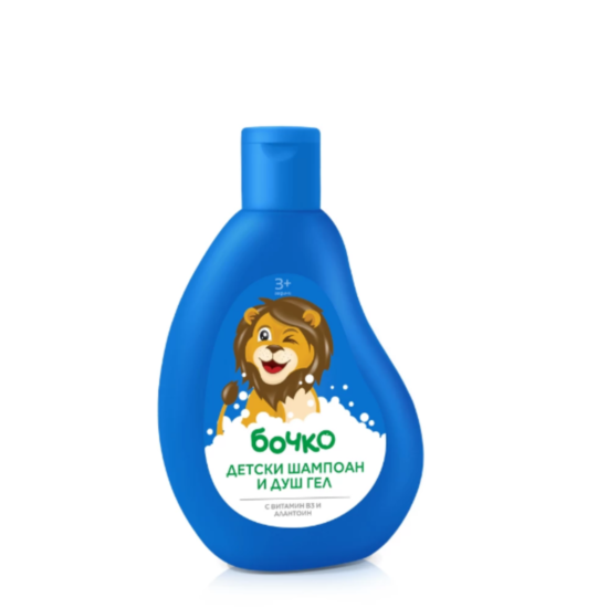 БОЧКО ШАМПОАН И ДУШ ГЕЛ 2 В 1 СИН 250МЛ е шампоан, който осигурява деликатно измиване на нежната коса на детето и улеснява разресването. Той почиства и омекотява косата. Обогатен е с Витамин В3 и глицерин, които защитават и подхранват детската коса. Има приятен аромат и пухкава пяна, които превръщат къпането в удоволствие. Съдържа алантоин, който се грижи за влажността и мекотата на кожата. Подходящ е за деца над 3 годишна възраст.