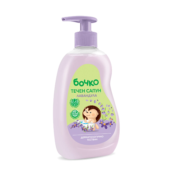 БОЧКО ТЕЧЕН САПУН ЛАВАНДУЛА 410МЛ е течен сапун, който почиства кожата и я оставя успокоена и защитена благодарение на вложения екстракт от лавандула. С активната си измиваща формула и с добавен глицерин, кожата остава чиста и мека. Със специално подбран, хипоалергенен аромат и с биоразградими активни съставки, течният сапун Бочко е подходящ за често измиване на чувствителна и склонна към алергии кожа.