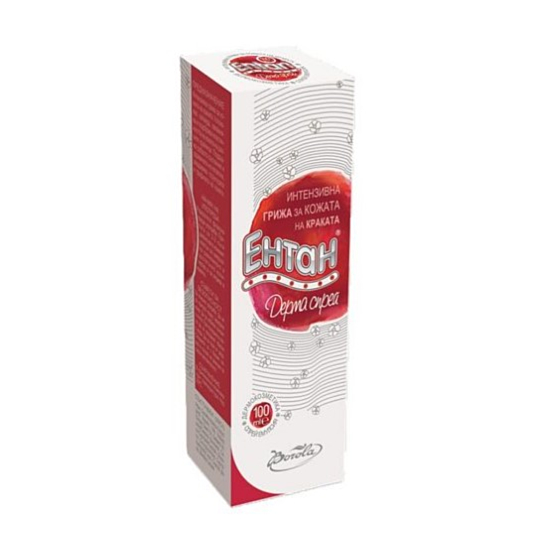 БОРОЛА ЕНТАН ДЕРМА СПРЕЙ 100МЛ е висококачествен дермокозметичен продукт под формата на емулсия във вид на спрей за цялостна грижа за кожата на краката. Ентан Дерма Спрей съдържа взаимно допълващи се съставки с благоприятен ефект върху структурата и трофиката на кожата.
