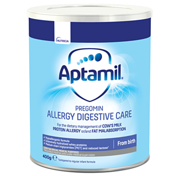 - Има специален вид Aptamil Allergy Digestive Care с хипоалергенни свойства, който е разработен за деца с алергии към белтъка на кравето мляко или малабсорбция на мазнини;