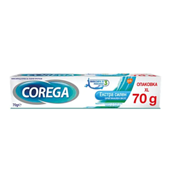 Corega КОРЕГА ФИКСИРАЩ КРЕМ ЗА ПРОТЕЗИ ЕКСТРА СТРОНГ XL 70ГР.Промо цена 15,99 лв. / 8,18 € Редовна цена 19,99 лв. / 10,22 €