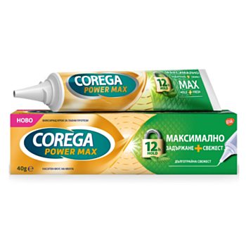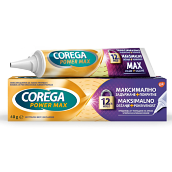 Corega КОРЕГА ФИКСИРАЩ КРЕМ ЗА ПРОТЕЗИ МАКСИМАЛНО ПОКРИТИЕ MAX HOLD&COMFORT 40ГРПромо цена 12,05 лв. / 6,16 € Редовна цена 13,69 лв. / 7,00 €