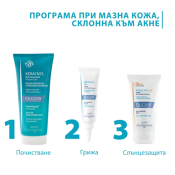 - Мазна кожа и кожа, склонна към акне - продуктите от серията Keracnyl ефективно почистват, регулират себума и намаляват несъвършенствата.