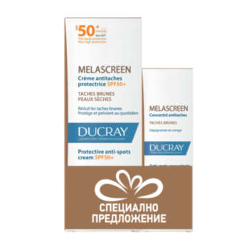 Ducray ДЮКРЕ КОМПЛЕКТ МЕЛАСКРИЙН ФЛУИД SPF50+ 50МЛ + ДЮКРЕ МЕЛАСКРИЙН КОНЦЕНТРАТ СРЕЩУ ПЕТНА 30МЛ Х56,00 лв. / 28,63 €