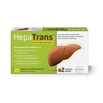 STADA *ХЕПАТРАНС МЕТИЛОВИ ДОНОРИ ТАБЛ. Х 20 СТАДАПромо цена 32,15 лв. / 16,44 € Редовна цена 34,20 лв. / 17,49 €