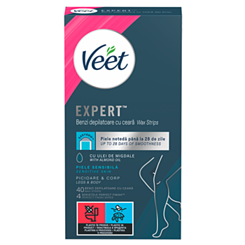 - Veet восъчни ленти - те са предназначени за дълготраен ефект и са подходящи за крака, ръце, лице и бикини зона, като премахват дори късите косъмчета от корен и намаляват нуждата от честа депилация.