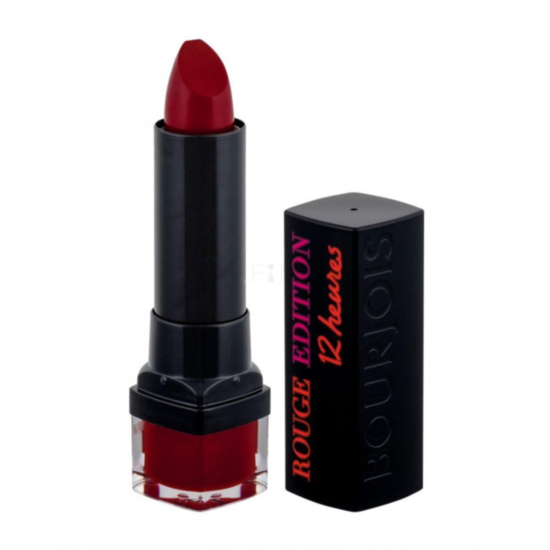 Дълготрайно червило, което обвива устните в неустоим завладяващ цвят и оставя нежен полу-матов завършек, който трае до 12 часа след нанасянето. Формулата на Буржоа Руж Едишън е обогатена с масло от ший, което хидратира, овлажнява и подхранва устните, оставяйки ги меки, свежи и сочни. Дълготрайното червило е с приятна кремообразна текстура, която се приплъзва нежно по устните, като ги покрива с плътен цвят, създавайки леко и комфортно усещане. Червилото съдържа копринена пудра, която осигурява 12-часов интензивен, плътен и перфектен цвят. Наситените цветове на Bourjois Rouge Edition 12 Hour се дължат на богатата палитра от чисти пигменти, като всеки нюанс покрива перфектно устните с много интензивен цвят. Нежното червило осигурява комфорт и самочувствие, като същевременно с това поддържа устните ви в перфектно състояние и ги предпазва от изсушаване и напукване.
