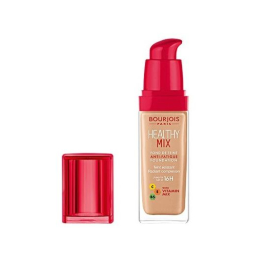 Дълготраен фон дьо тен, който изглажда кожата, прикрива несъвършенствата, изравнява тена и същевременно с това доставя дълбока хидратация, естествен блясък и здравословен вид на кожата, в продължение на 16 часа след нанасянето! Фон дьо тенът Healthy Mix е с лека текстура, която не запушва порите, не натежава на кожата, не образува неприятния ефект на "маска", а оставя кожата хидратирана и омекотена, позволявайки и да "диша". Формулата на Bourjois Healthy Mix е съставена от кристални пигменти, които допринасят за прикриване на тъмните петна и коригиране на неравномерния тен, възвръщайки свежия и тонизиран вид на кожата. Иновативната формула на фон дьо тенът е обогатена с екстракт от кайсия, който осигурява естествен блясък, екстрактът от пъпеш хидратира и овлажнява кожата, джинджифилът енергизира кожата, а ябълката поддържа младежкото излъчване на кожата.