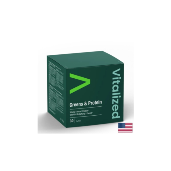 Greens & Protein Vitalized е специално разработена формула, която комбинира концентрирани екстракти от зелени суперхрани като ечемична трева, спанак, броколи, спирулина, пшенична трева, кейл и хлорела с висококачествени протеини и естествен витамин C от ацерола. Тази мощна комбинация подпомага енергията, мускулната функция и здравето на черния дроб.