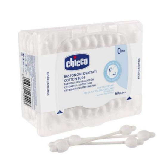 ЧИКО N0621 КЛЕЧКИ ЗА УШИ С ОГРАНИЧИТЕЛ Х 60БР са висококачествени клечки за уши, подходящи за бебета още от първите дни след раждането. Те спомагат за поддържането на качествена ушна хигиена на бебетата. Те са с меки и нежни краища от 100% чист памук. Освен това разполагат с ограничител за безопасна употреба. Предлагат се в практична, нечуплива кутия за хигиенично съхранение. Клечките за уши се отличават със способността си да абсорбират влагата и да отстраняват замърсяванията. От биоразградими материали.