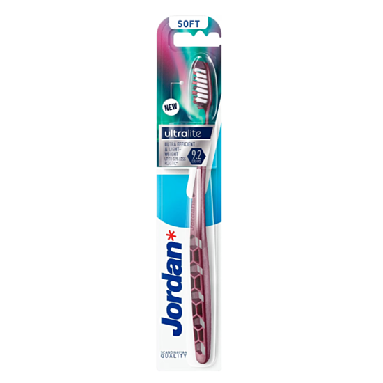 JORDAN ЧЕТКА ЗА ЗЪБИ УЛТРАЛАЙТ СОФТ е четка за зъби с влакна, които нежно почистват зъбите. Също така предотвратяват кървенето и дискомфорта. Голямата глава премахва остатъците от храна от зъбната повърхност (както отпред, така и отзад). Достига до най-труднодостъпните места. Нежно масажира венците и ги прави устойчиви на възпаления.