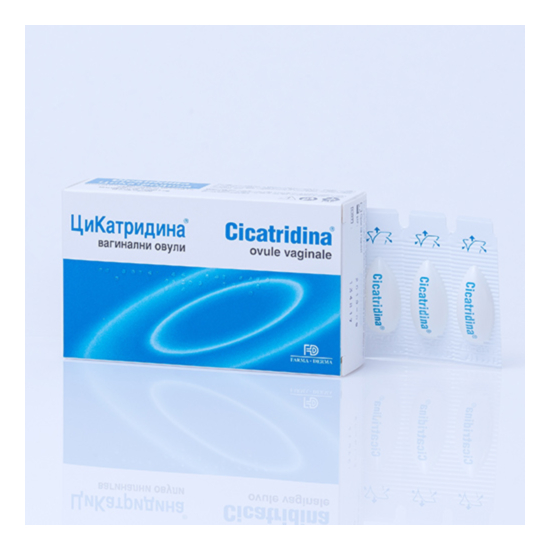 ЦИКАТРИДИНА се предлага под формата на овули за вагинална употреба. Опаковката съдържа 10 вагинални овули от 2 гр.