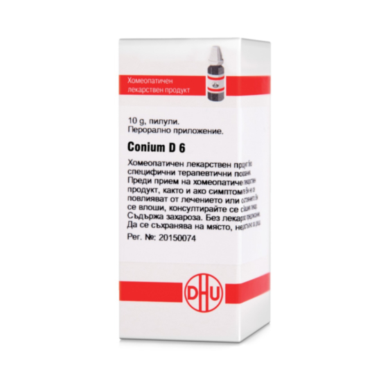 DHU Conium D6 представлява хомеопатичен лекарствен продукт, приготвен от екстракт от подземни части на билката бучиниш, която в хомеопатията се използва за лечебно въздействие върху уринарна инконтиненция. Кониум е монопрепарат, който освен за заболявания на мъжките пикочни пътища и половите органи, спомага още при стомашно-чревни оплаквания, психични оплаквания, подуване на жлезите, симптоми на износване на гръбначния стълб, кожни проблеми. Приложим е и за неврогенен пикочен мехур. Хомеопатичните лекарства представляват силно разредени субстанции на неорганични соли, минерали, растения, тъкани, отрови и др., които носят в себе си специфичното действие, характерно за веществото, от което са получени. Най-общо казано, действието на хомеопатичното лекарство се състои в подаването на сигнал към организма, който да мобилизира самооздравителните си сили на всички нива: умствено, емоционално и физическо.