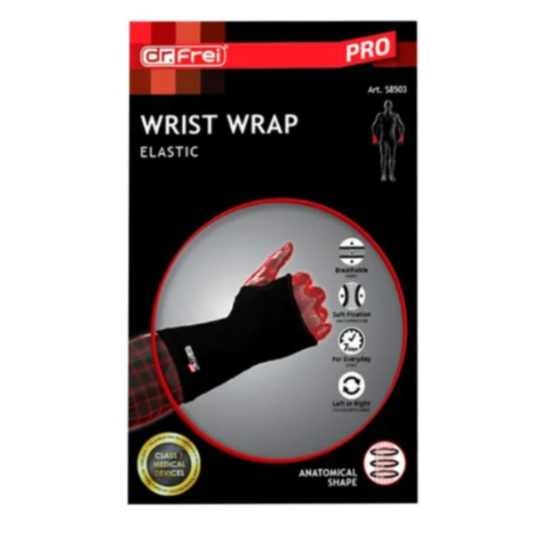 Д-Р ФРАЙ ЕЛАСТИЧЕН НАКИТНИК 8503-M е предназначен за оптимално фиксиране на ставата на китката. Има отличен анатомичен дизайн от дишаща еластична материя, който го прави комфортен за ежедневна употреба. Др. Фрей Бандаж за китка еластичен XL S8503 може да се използва при спорт и физическо натоварване с цел да се редуцира риска от навяхвания или травми. Може да се поставя, както на лявата, така и на дясната ръка. Размери: 20 - 22 см (± 1,0 см).