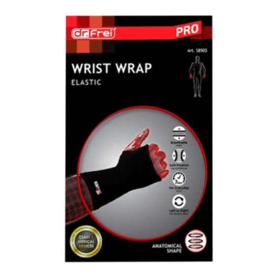 Д-Р ФРАЙ ЕЛАСТИЧЕН НАКИТНИК 8503-XL е предназначен за оптимално фиксиране на ставата на китката. Има отличен анатомичен дизайн от дишаща еластична материя, който го прави комфортен за ежедневна употреба. Др. Фрей Бандаж за китка еластичен XL S8503 може да се използва при спорт и физическо натоварване с цел да се редуцира риска от навяхвания или травми. Може да се поставя, както на лявата, така и на дясната ръка. Размери: 20 - 22 см (± 1,0 см).