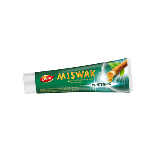 Билковата паста за зъби Dabur Miswak Whitening представлява чист екстракт от мисвак (Ал-арак), обогатена със съставки за нежно избелване на зъбите. Тя предлага естествено решение за по-ярка усмивка. Мисвак, известен със своите почистващи свойства, е в центъра на тази формула без флуорид, която осигурява освежаващо и ефективно почистване. Доверете се на силата на природата за нежно и естествено избелване на зъбите.