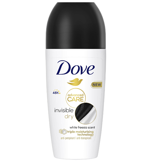 ДАВ ADVANCED ДЕЗОДОРАНТ РОЛ-ОН ДАМСКИ INVISIBLE DRY 50МЛ е дезодорант рол-он, против изпотяване с 1/4 овлажняващ крем и витамин E, който доказано не оставя бели следи върху 100 цвята. В допълнение ще се насладите на 72-часова ефикасна защита против изпотяване.