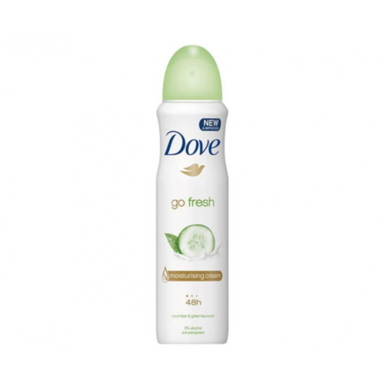 Dove Go Fresh е дезодорант, който осигурява 48 часова защита против изпотяване и неприятни миризми. Дезодорантът има свеж аромат и лека консистенция, която деликатно попива в кожата. Съдържа витамин Е и 1/4 хидратантен крем, които се грижат за кожата на подмишниците, като я подхранват и хидратират. Подходящ е за ежедневна употреба. Не съдържа алкохол, и не предизвиква раздразнения на кожата.