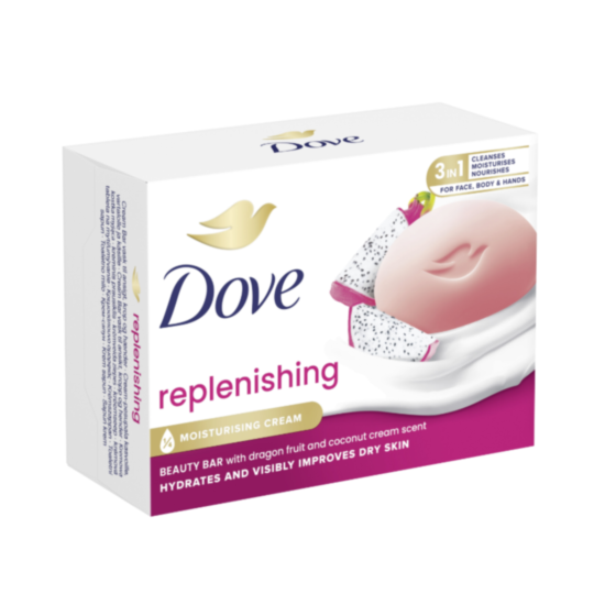 Крем-сапунът Dove Replenishing с аромат на драконов плод и кокосов крем осигурява нежно и ефективно почистване на кожата. С формула, обогатена с меки почистващи съставки, той помага за запазване на естествената влажност на кожата. Неговата деликатна текстура не само почиства, но и подхранва и хидратира, оставяйки кожата гладка и мека на допир. След първото измиване ще усетите свежия аромат и грижата, която предлага с омекотяващ ефект. С 1/4 хидратиращ крем и нежни почистващи агенти, крем-сапунът Dove Replenishing поддържа оптимално ниво на хидратация, което прави кожата ви приятно ухаеща и освежена.