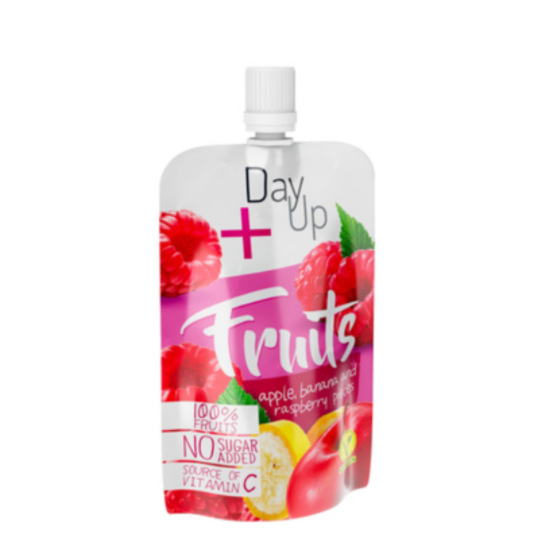 ДЕЙ ЪП ПЛОДОВА ЗАКУСКА ПАУЧ ЯБЪЛКА,БАНАН И МАЛИНИ 100ГР. пюре под формата на пауч с плодове. Готов за консумация, подходящ за закуска или междинно хранене. Съдържа 100% плодове от ябълки, банани и парченца малини. С витамин C. Без добавена захар. Не съдържа глутен, изкуствени аромати, консерванти и оцветители. Предлага се в опаковка от 100 г.