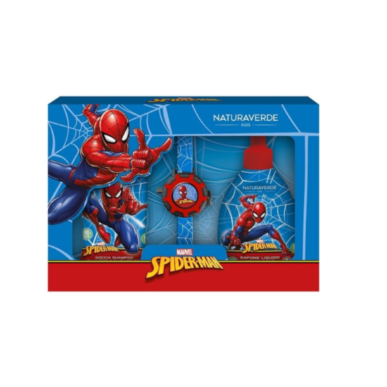 Подаръчен комплект, с който ще зарадвате малките любители на един от най-известните супергерои - Spider-man. Състои се от шампоан за коса и тяло, течен сапун и гривна с проектор. Върху продуктите е изобразен именно Спайдърмен, впуснал се в поредното приключение.