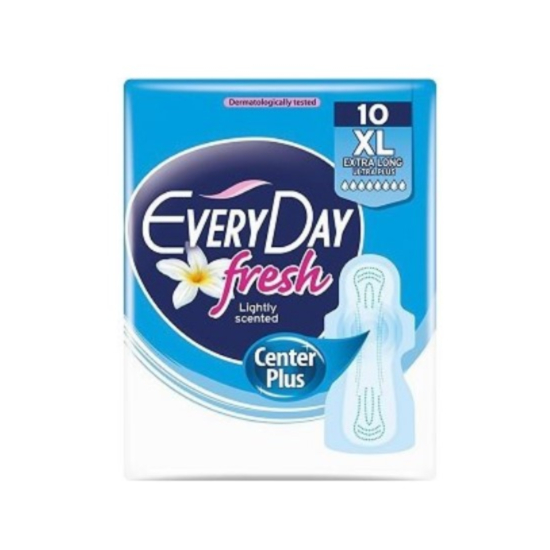 ДП ЕВРИДЕЙ ФРЕШ УЛТРА ПЛЮС ЕКСТРА ЛОНГ Х 10 - Дамските превръзки на EveryDay са ултра тънки и изключително дълги. Специалната технология Center Plus, с удължена сърцевина, осигурява подобрена абсорбираща способност и висока защита. Превръзките притежават двойни крилца - "централни" крилца, които предпазват от странично протичане и "задни" крилца, които осигуряват по-добро захващане и защита от протичане отзад. Те са с абсорбираща способност 8 от 8 и са подходящи в случаите на много силен менструален цикъл и за употреба през нощта. Имат дискретен аромат, оставящ дълготрайно чувство на чистота и свежест.