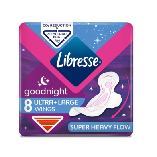 ДП ЛИБРЕС НОЩНИ LARGE Х 8 - Дамски прeвръзки за изключителна защита през нощта - до 10 часа защита от протичане! Супер бързо абсорбираща сърцевина за сухо и комфортно усещане. По-широки предна и задна част на превръзката - повече абсорбираща площ и сигурност от протичане. Допълнителни нежни странични бариери по цялата дължина на превръзката - двойна защита от нежелано протичане.