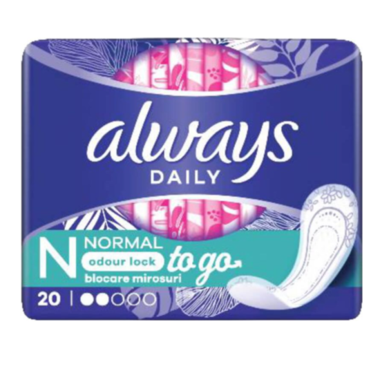 ДП ОЛУЕЙС TO GO ЕЖЕДНЕВНИ НОРМАЛ Х 20 са висококачествени ежедневни дамски превръзки, които осигуряват дълготрайна и ефективна защита от протичане. Разполагат с изключително нежна памучна настилка, която не предизвиква запарване и позволява на кожата да диша свободно и безпроблемно. Същевременно прилягат перфектно и предотвратяват разместването и последващото протичането по време на движение. Деликатната текстура на превръзките е лесна и удобна за употреба. След използване Вие сте защитени, с чувство на комфорт и увереност.