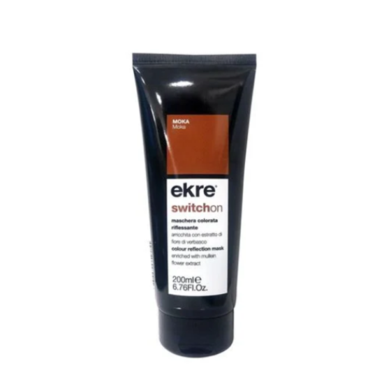 ЕКРЕ МАСКА ЗА КОСА ОЦВЕТЯВАЩА 200 МЛ MOKA е маска за коса, съдържаща ярки пигменти, които повишават блясъка и яркостта на цвета - естествен или боядисан. Страхотната формула се грижи за структурата на косъма, като същевременно гарантира изключително бързо и професионално обслужване. Подчертава нюанса, улеснява разресването и ефикасно прикрива първите бели коси. Съдържащото се рН постига пълно изглаждане на прическата и възвръща естествената ѝ сияйност и красота, а екстрактът от цвета на билката лопен абсорбира вредните UV лъчи и ги трансформира в неотразим блясък.