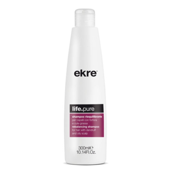 ЕКРЕ ШАМПОАН LIFE PURE ПРОТИВ ПЪРХОТ И МАЗЕН СКАЛП 300МЛ е шампоан за коса, който е специално предназначен за отстраняване на пърхота и балансиране на мазния скалп. Неговата формула съдържа дермо-почистващи, стимулиращи и тонизиращи съставки, които подхранват и възстановяват косъма и космените фоликули. Активните съставки регулират себумната секреция, като същевременно успокояват и заздравяват корените.